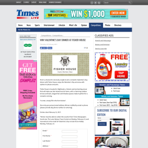 Here’s a chance for one lucky couple to win a romantic Valentine’s Day dinner with Fisher House, enjoy the Valentine’s Day set menu with options to please everyone.